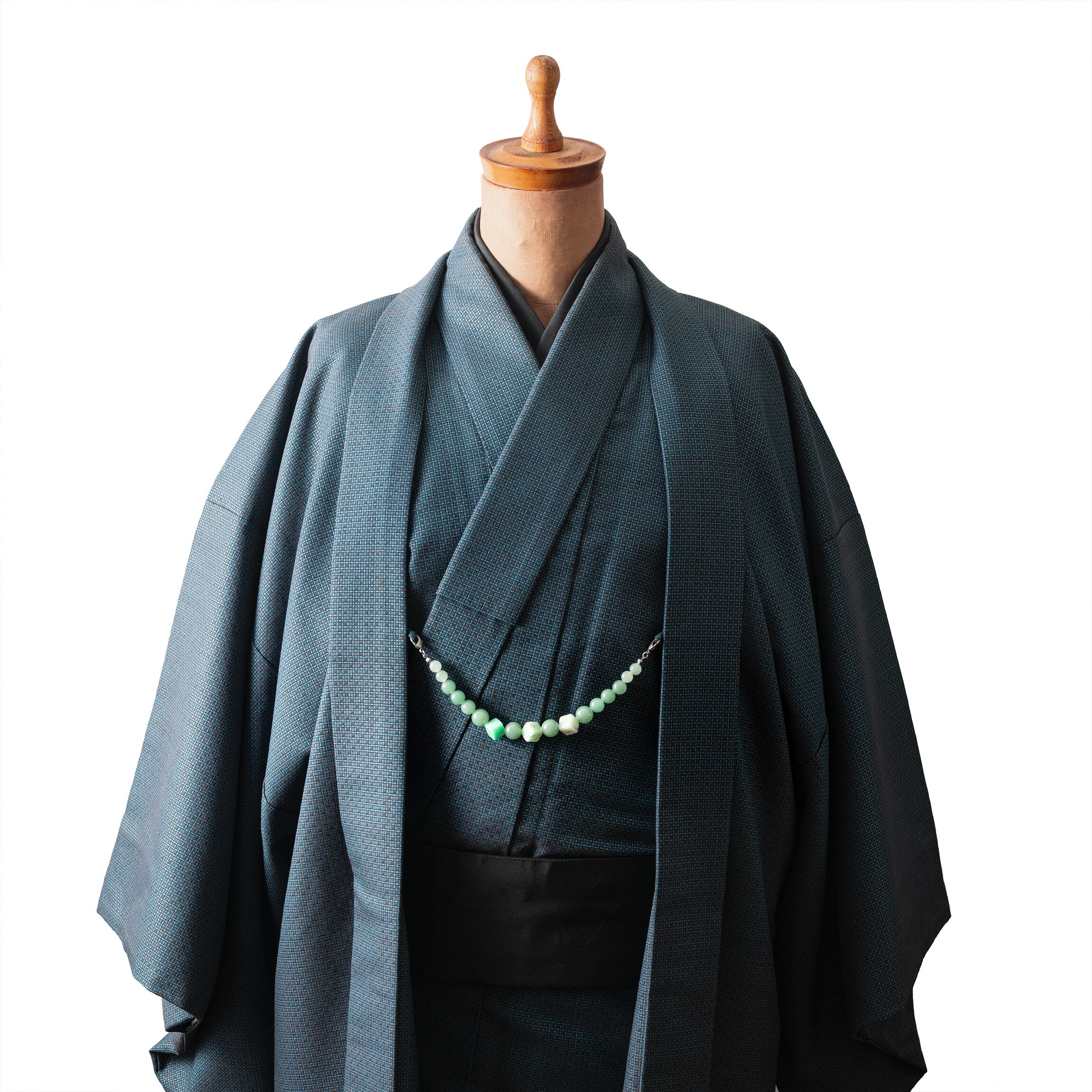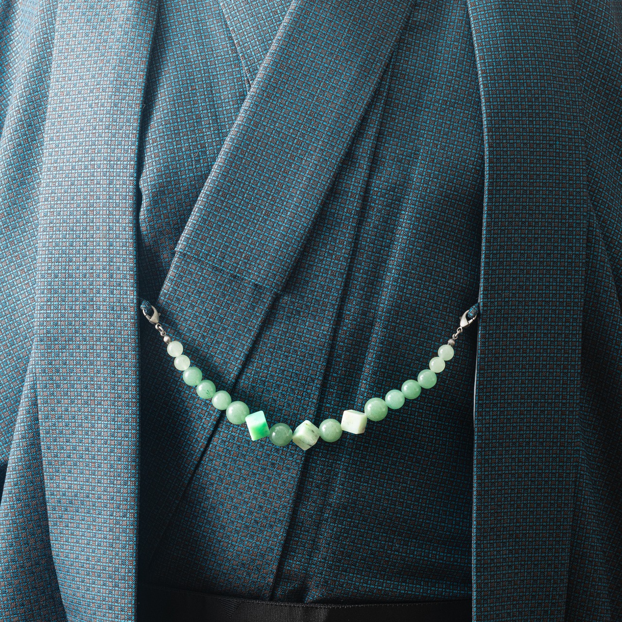 爽やかなグリーンの彩りが印象的な、アベンチュリンとクリソプレーズを組み合わせた羽織紐です。