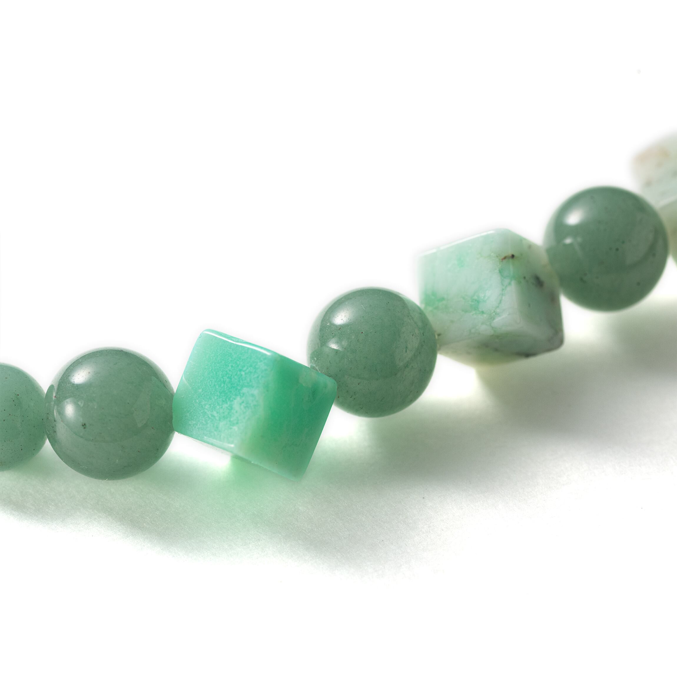透明感のあるアベンチュリンの穏やかな輝きに、シックなクリソプレースが加わることで、上品さの中に凛とした存在感を放ちます。