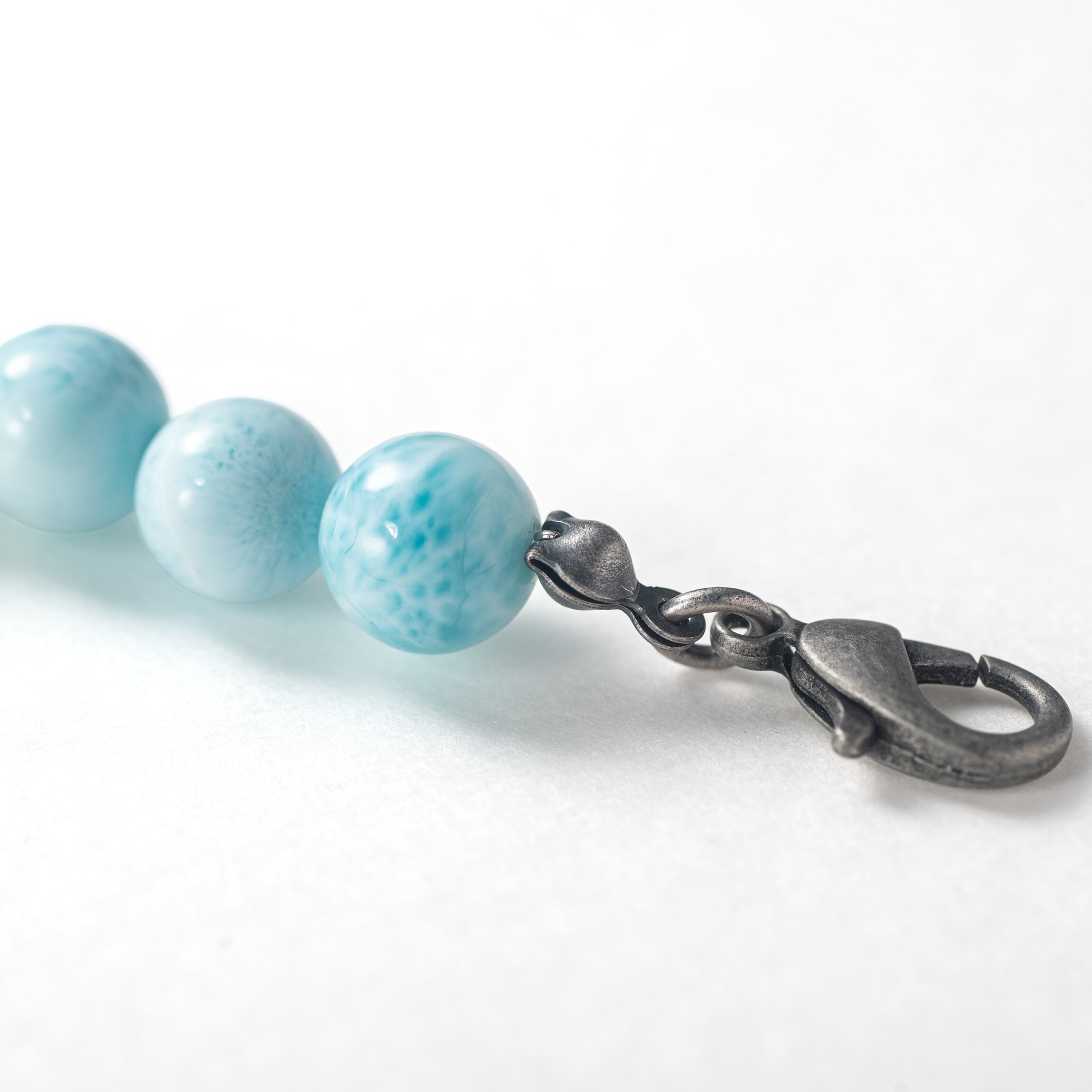 「愛と平和の石」とも呼ばれるラリマー。その唯一無二の美しさが、日常から特別な装いまで格調高く引き立てる一本です。