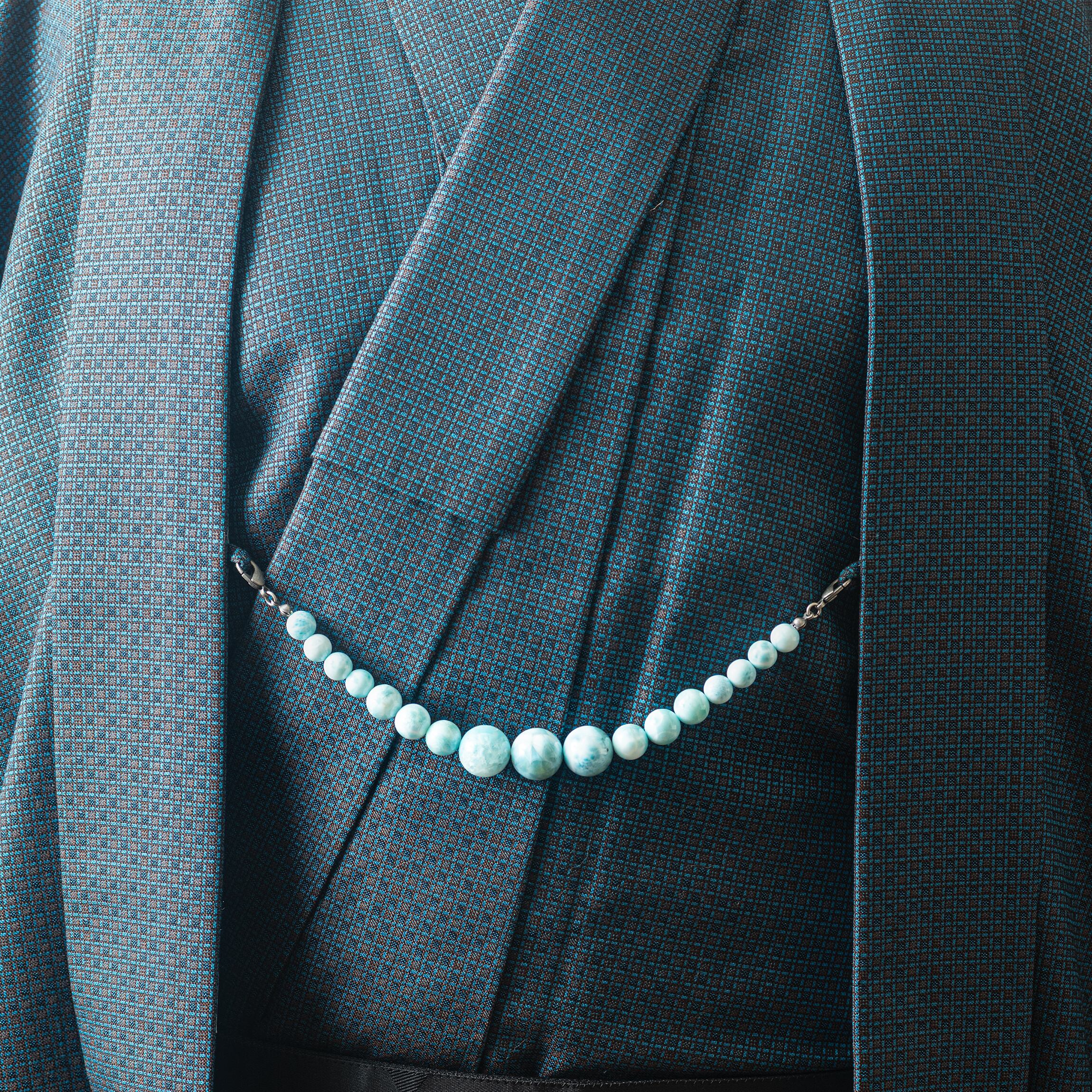 カリブ海の海を思わせる清らかなブルーが魅力の ラリマーを贅沢に用いた羽織紐です。